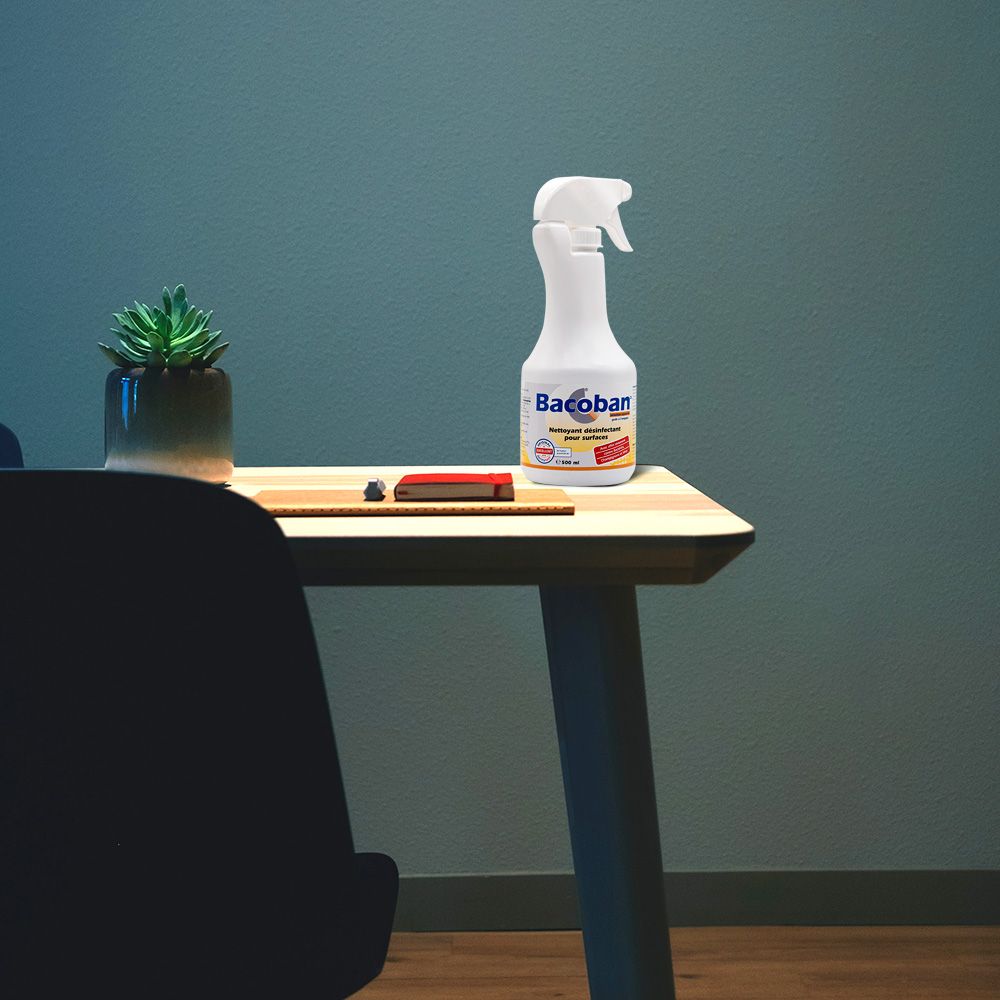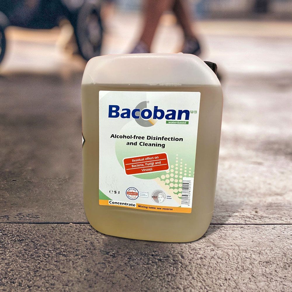 Bacoban un nouveau désinfectant innovant qui offre un effet résiduel grâce à la nanotechnologie. Bacoban est un désinfectant avec un temps de désinfection rapide, un effet antiviral de longue durée contre les bactéries, virus et champignons. Une fois évaporé, Bacoban forme une «nano-éponge» a effet résiduel. A travers cette couche de nano-éponge se trouvent des biocides qui, suite à une contamination, ce diffusent à la surface où ils tuent virus, bactéries et champignons. La solution désinfectante a Bacoban peut être utilisé comme nettoyant et désinfectant de choix pour fournir une protection anti-pathogène premium, avec un effet long terme pouvant aller jusqu'à 10 jours. Bacoban est compatible tout type de support, il peut facilement être intégré dans les programmes de nettoyage et de désinfection. La couche de nanocoat de Bacoban offre une surface facile à nettoyer qui peut réduire le temps de nettoyage jusqu'à 50%. En réduisant les salissures dues à l'énergie de surface, la poussière et les autres particules adhèrent librement à la surface, ce qui leur permet d'être facilement éliminées. Bacoban, conçu pour les normes d'hygiène les plus strictes, vous aidera à améliorer le contrôle général des infections.